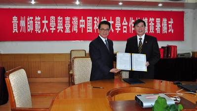会上,双方签署了贵州师范大学与台湾中国科技大学的学术交流协议书。旨在从教职员交流与研习、学生交流与研修、共同推动学术研究工作、合办讲座于学术研讨会等多领域共同推动双方的交流和合作。